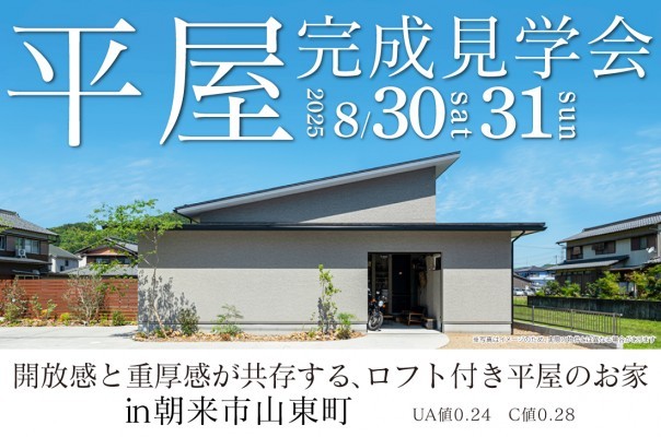兵庫終了【完成見学会 at 朝来市山東町】8/30(土)・31(日) 開放感と重厚感が共存する、ロフト付き平屋のお家