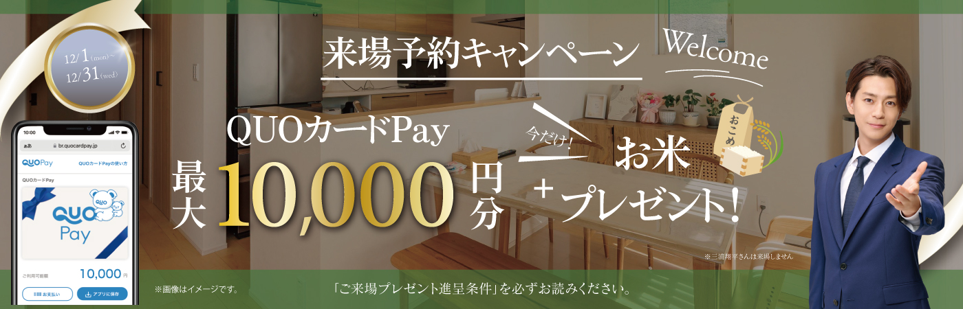 合計で10,000円分のQUOカードPayとお米の特典をご用意しております。