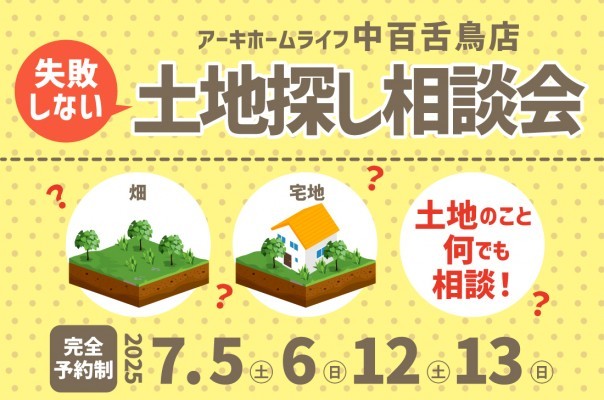 大阪終了【無料相談会開催!】2週連続!7/5(土)~中百舌鳥店 失敗しない!土地探し相談会