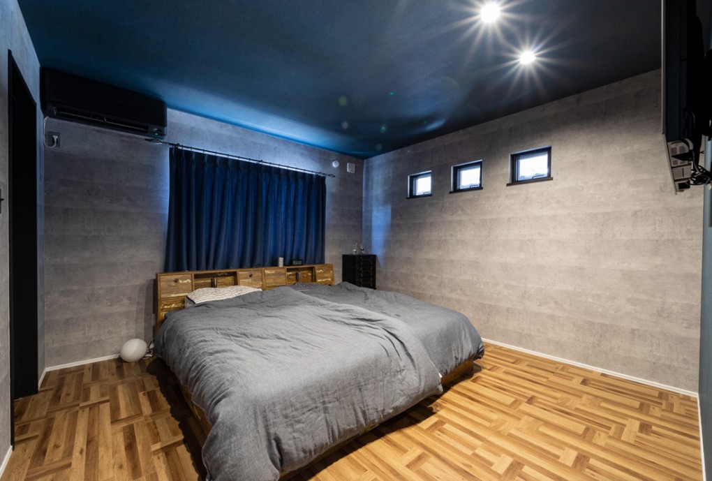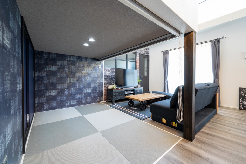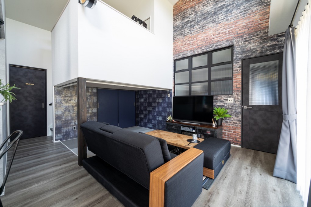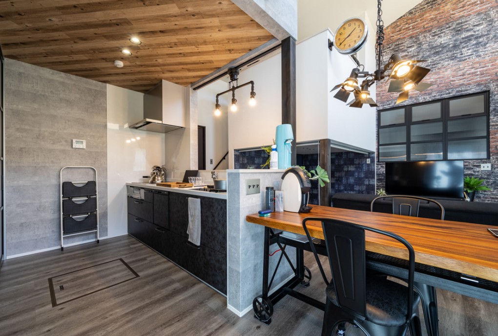 インテリアはグレー・黒・木目で合わせてヴィンテージな雰囲気に。
