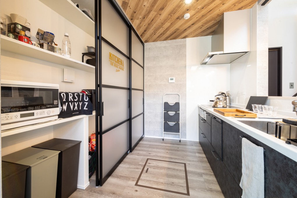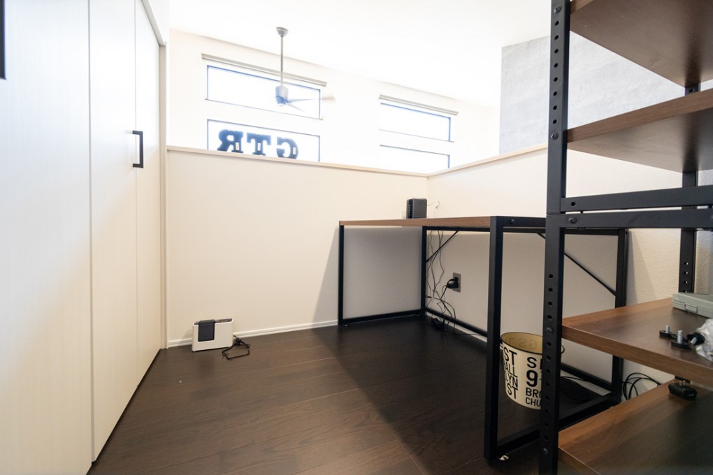 玄関横には作業場がありご夫婦でDIYを楽しむスペースになっています。