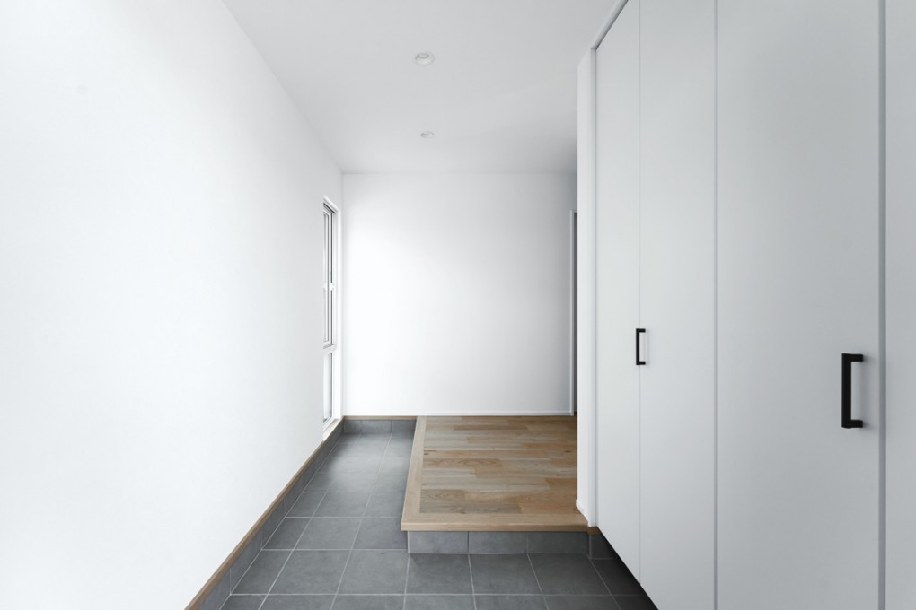 廊下の壁にはロールスクリーンで目隠し可能なたっぷり収納でスペースを無駄にしません。