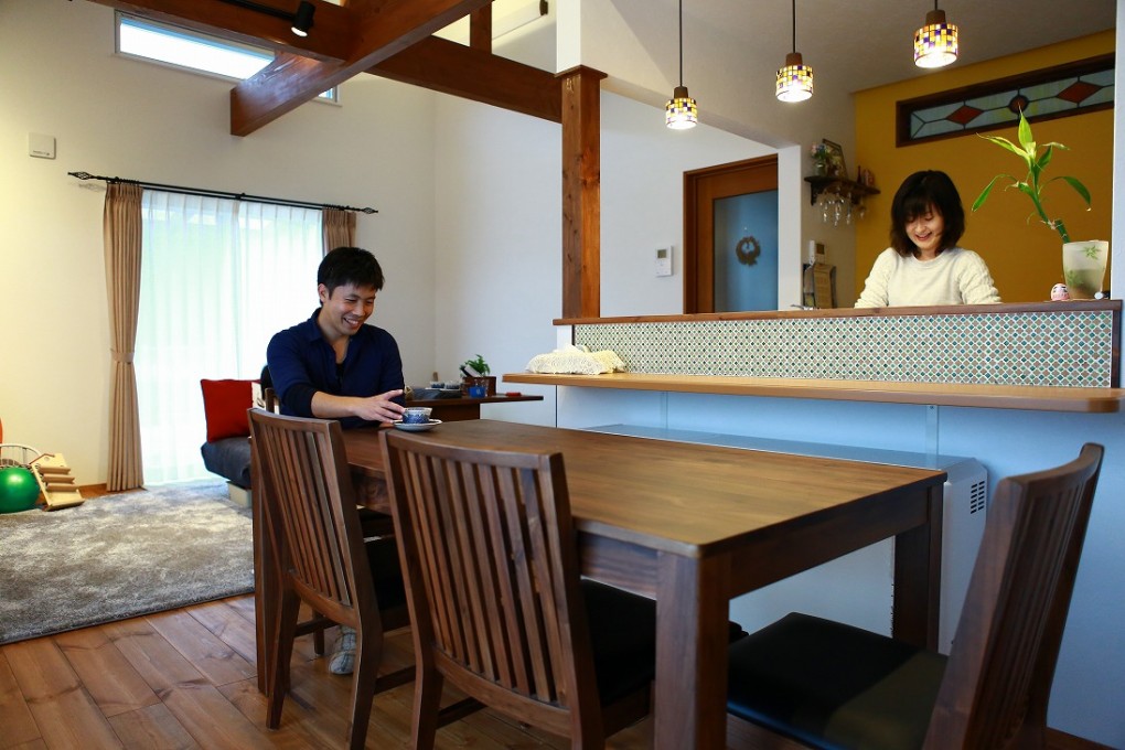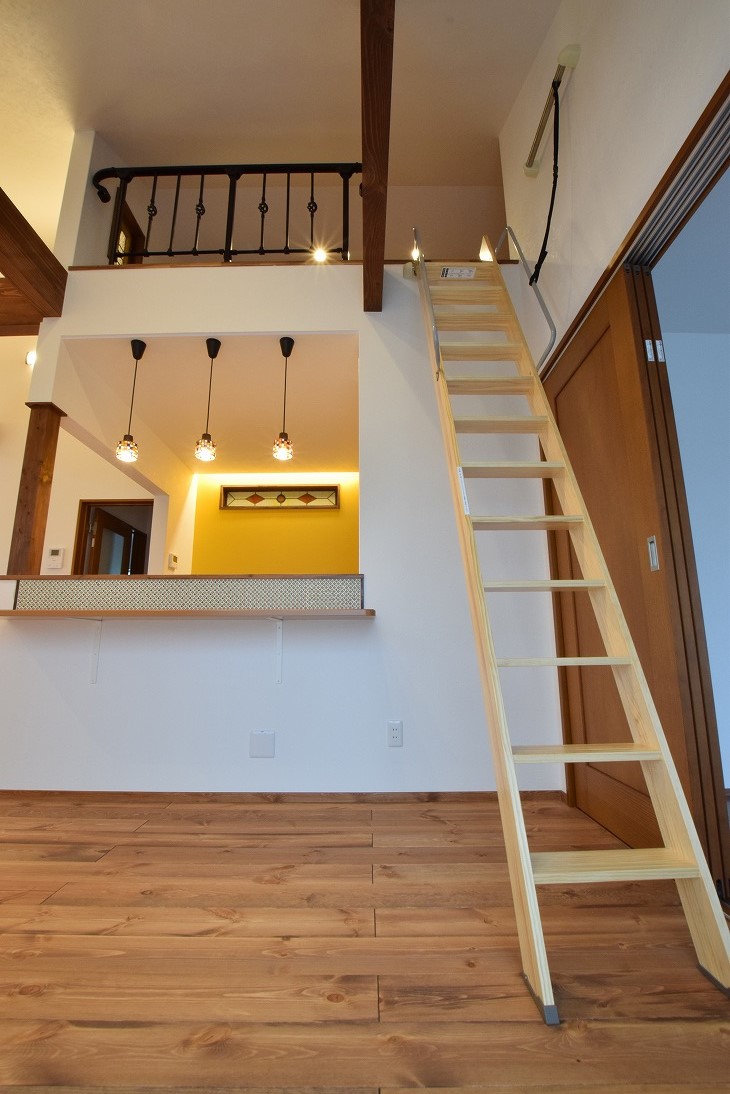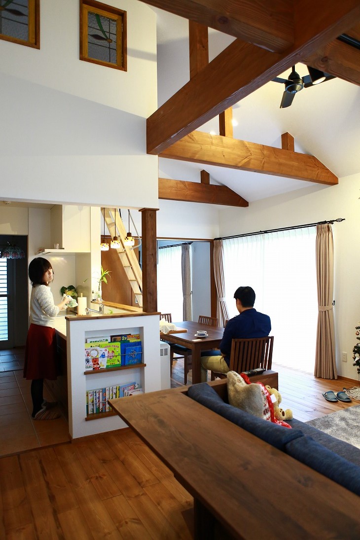 内部も、無垢の木のフローリングや勾配天井に見せ梁を使用し、木のぬくもりあるお家になっています。