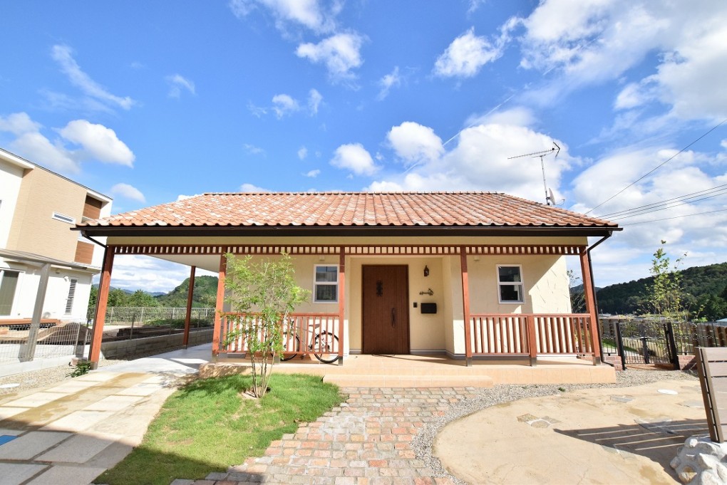二色の瓦に塗り壁、外部に柱や格子が魅せるナチュラルでおしゃれな平屋です!