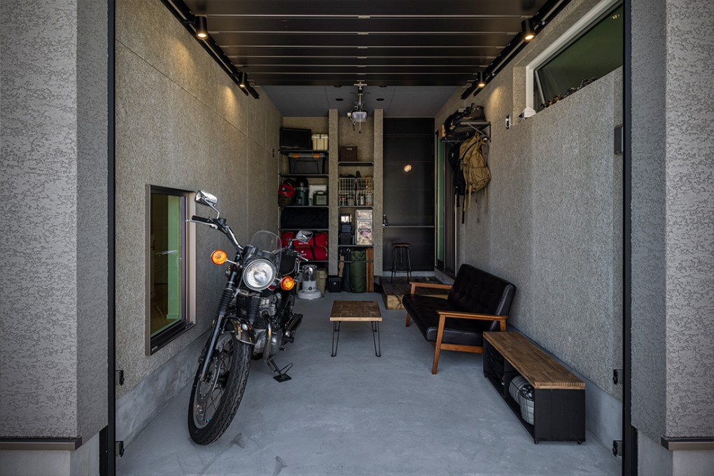 南面の大きな窓、インナーガレージなど遊び心のある楽しいお家です。